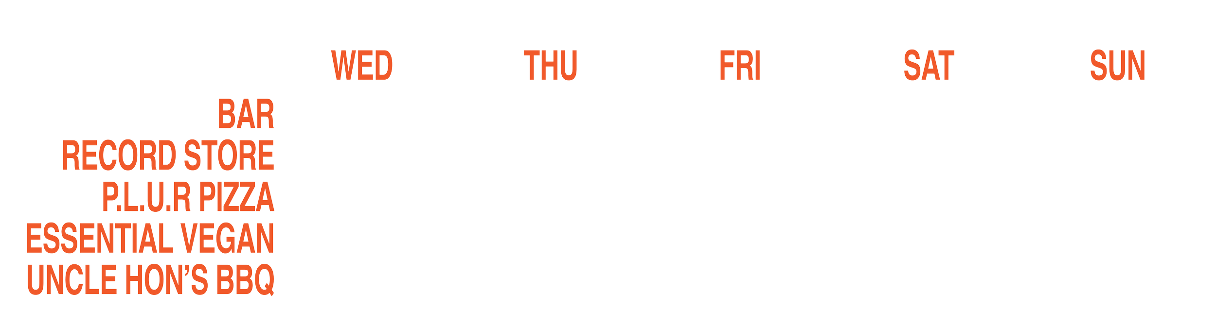 A more laidback affair featuring a record shop and custom-built high-fidelity sound system soundtracked by our favourite selectors. Food offerings include fresh sourdough pizzas from P.L.U.R., vegan food from Essential Vegan and Texan BBQ from Uncle Hon's BBQ, alongside delicious seasonal cocktails, natural & organic wines and local craft beer.